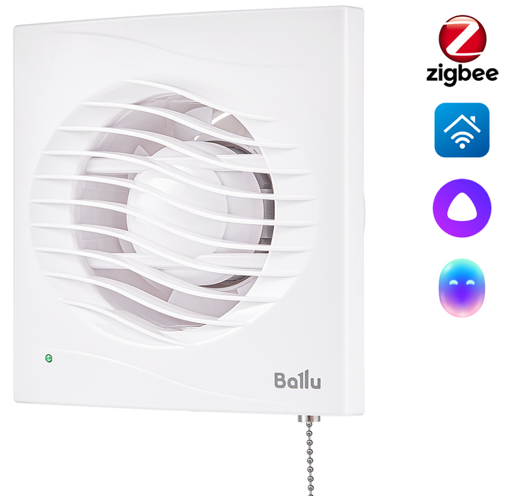 Ballu (Баллу) BAF-AR 100 VP это вытяжка для ванной, изготовленная из пластика ABS в белом цвете. Модель оборудована осевым вентилятором, двигателем с подшипниками скольжения и защитой от перегрева, тяговым выключателем, а также мембранным обратным клапаном. Управление по Wi-Fi доступно опционально.