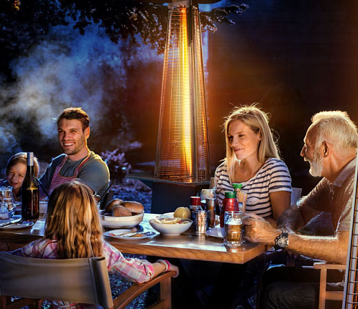 Свет: инфракрасное излучение и визуально привлекательный столб пламени в боросиликатной колбе обеспечивают яркое и завораживающее освещение вечером.